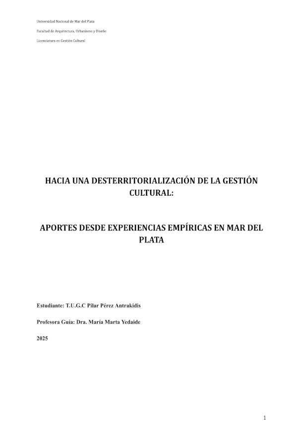 Hacia una desterritorialización de la gestión cultural: aportes desde experiencias empíricas en Mar del Plata.