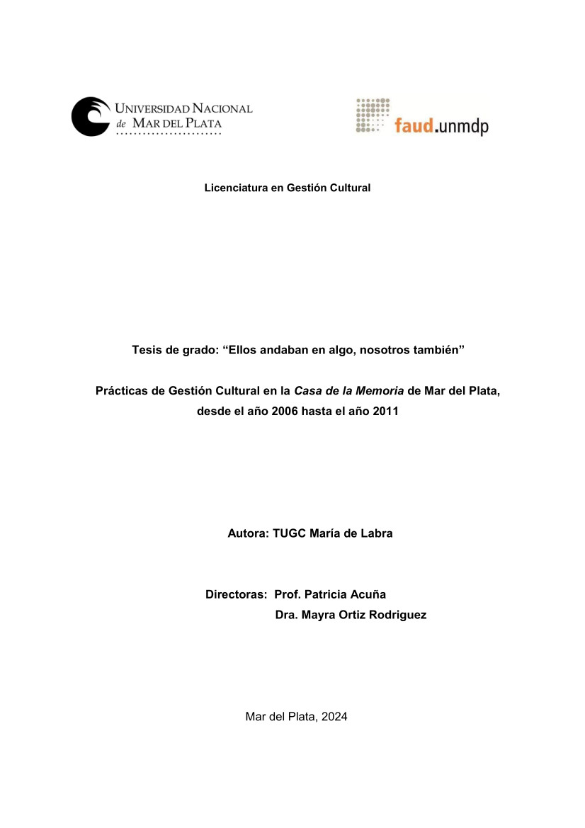 Ellos andaban en algo, nosotros también: prácticas de Gestión Cultural en la Casa de la Memoria de Mar del Plata, desde el año 2006 hasta el año 2011.